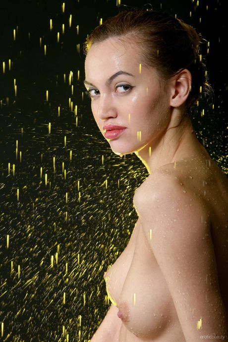 Skinny Ukrainian girl Witta strips and poses naked in wet stockings