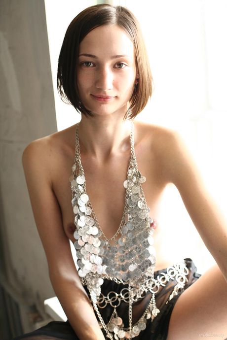 Skinny Ukrainian Mari A strips and teases with her tiny tits & sexy ass
