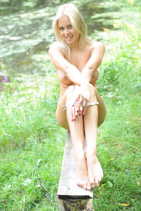 Slender teen Berry A shows her small tits and poses naked in a solo