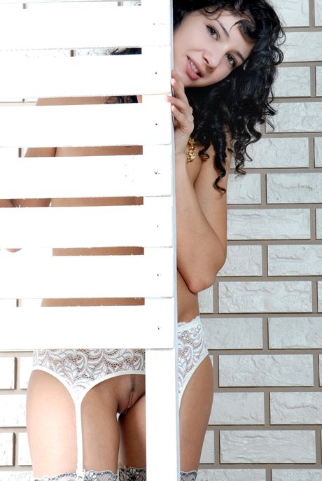 Slender teen Dinara shows her tiny tits & poses nude in a solo