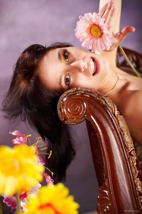 Slender teen Klarisa A removes her lingerie to pose nude in a kitchen