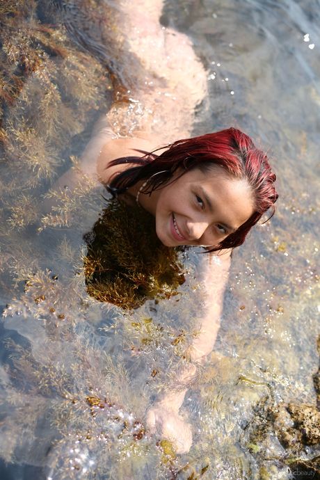 Slender teen Nastia A poses nude on a beach & displays her tiny tits & hot ass