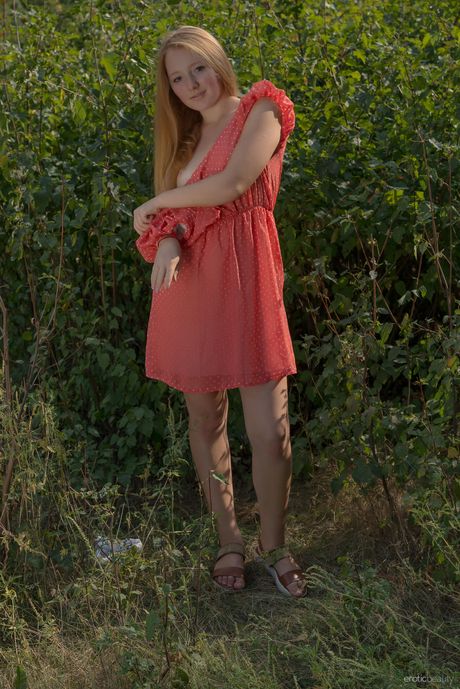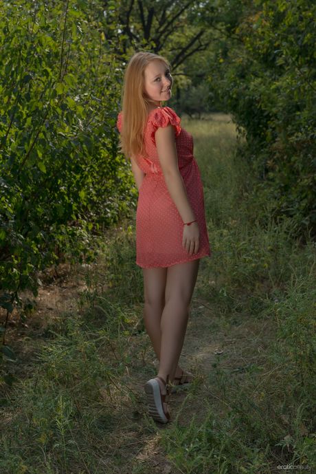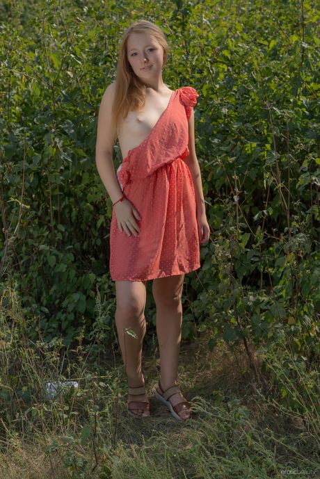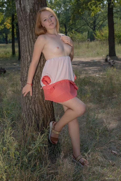 Svelte teen Red Cat shows her small tits and poses naked in a solo