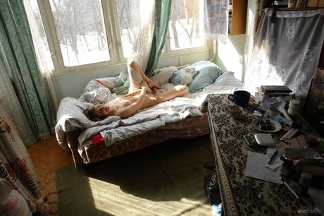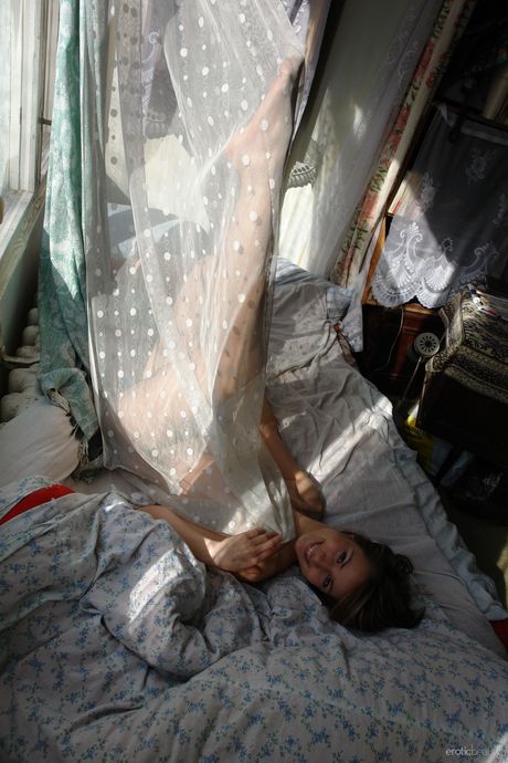 Tender teen Alizeya A highlights her tight ass while naked on a bed