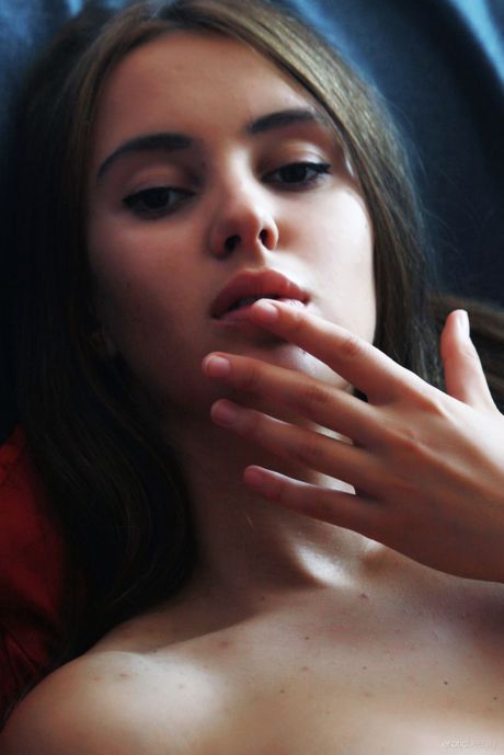 Tender teen Alya removes her lingerie to get bare naked on her bed
