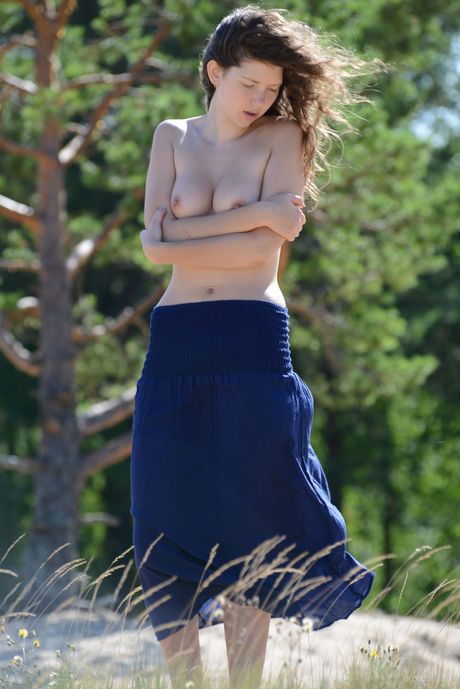 Tender teen Anamika gets naked on a bench in a park during solo action