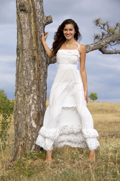 Tender teen Zara A takes it all off on a blanket in a field during solo action