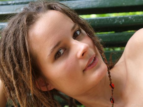 Thin teen Hanka A strips and poses naked in the public park