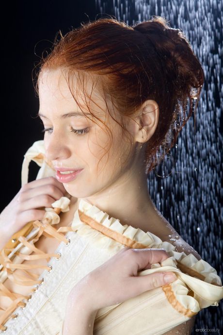 Thin teen with red hair Gillian A removes her lingerie to pose nude