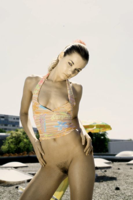 Thin teen with tiny tits Kristzy poses nude in a solo