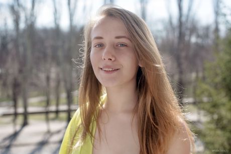 Ukrainian babe Villxo presents her tiny tits and poses naked in the backyard
