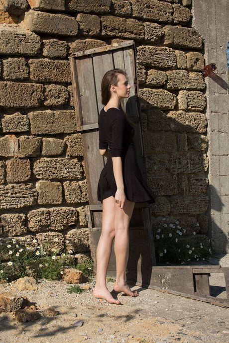 Ukrainian teen Gracie strips and poses nude outdoors