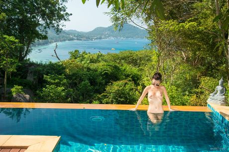 Ukrainian venus Jazz shows her hairy pussy and tight ass in a pool
