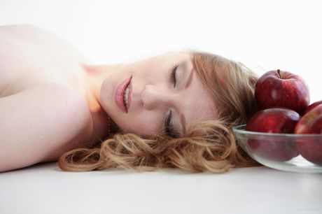 Young redhead Marianna B gets completely naked on a bed with certainty