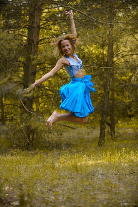 Young redhead Ovta takes it all off on a patch of grass by herself