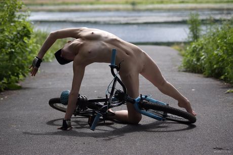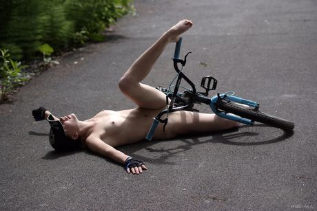 Young redhead Viv takes off everything on a backyard patio fearlessly