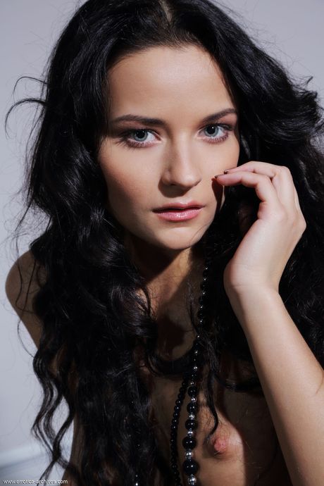 Angelic teen Ardelia A removes her stockings to get totally naked