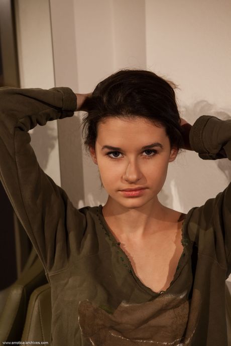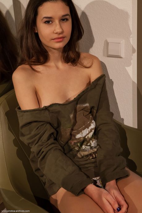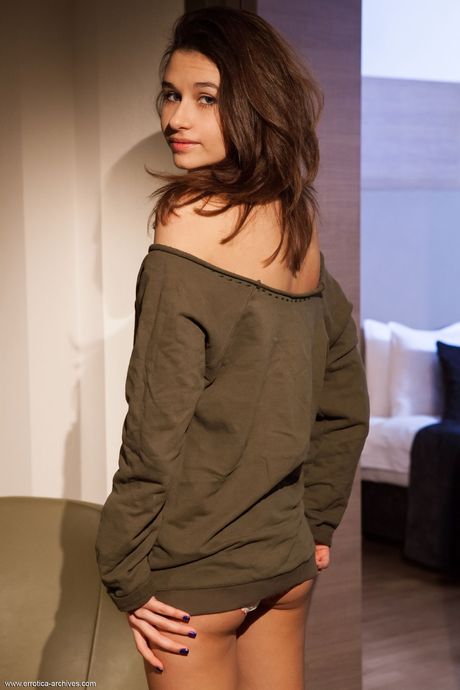 Bashful teen girl with long hair and a great ass gets naked in her bedroom