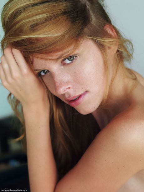 Bashful teen Tubbea removes her heels to get naked on a dining table