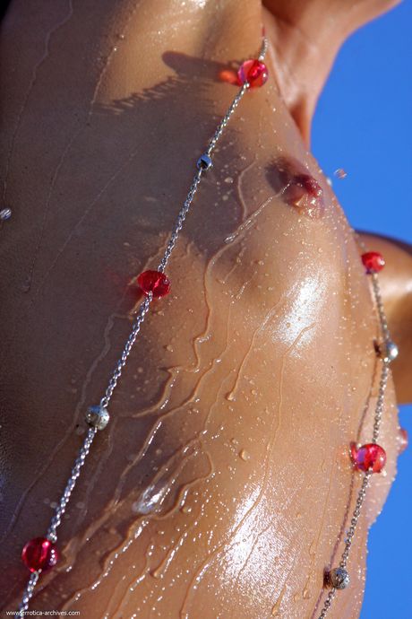 Beautiful teen Layla oils up her naked body and poses in the backyard