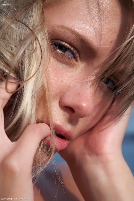 Blonde beauty Danae models totally naked on a beach in the ocean