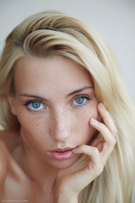Blonde teen Adele models totally naked on a chair without embarrassment