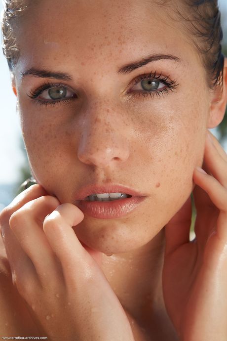 Blonde teen Iveta models totally naked in a swimming pool during solo action