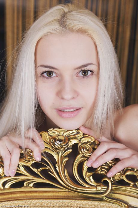 Blonde teen Leonie highlights her tight ass and pussy while naked on a bed