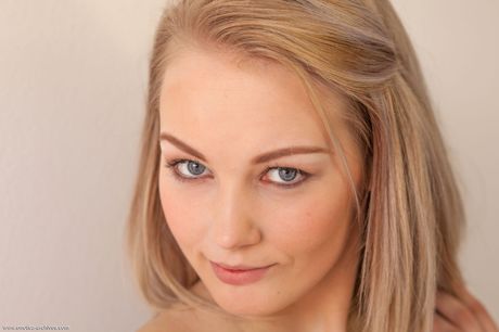Blonde teen Lynne displays her beautiful body in the nude during solo action