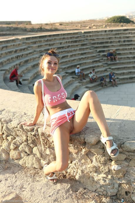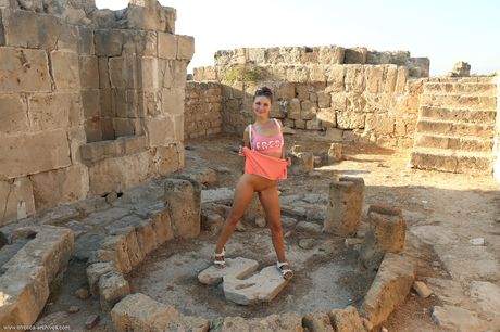 Brunette teen Galina A gets naked in a deserted location while wearing glasses