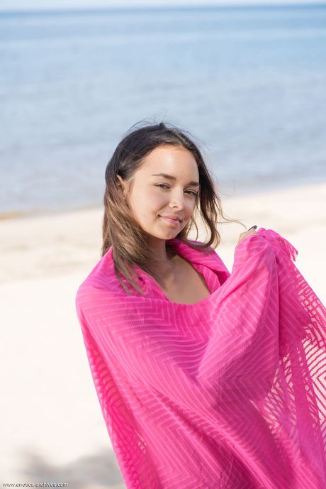 Charming teen Slava A models totally naked on a rocky beach
