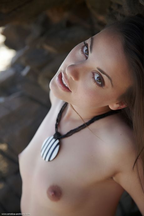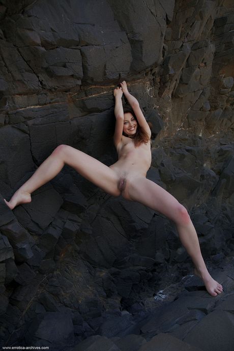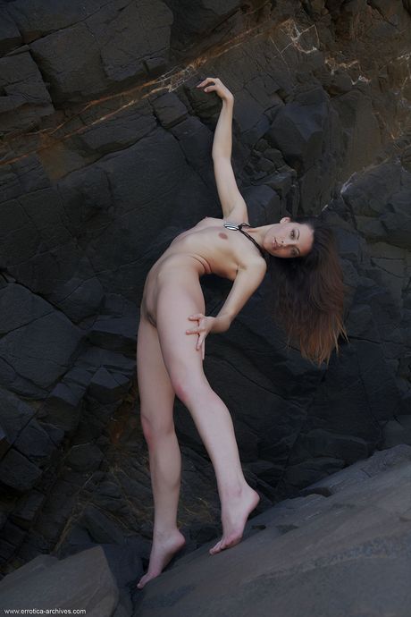 Cute teen Lorena models totally naked on a rocky outcropping