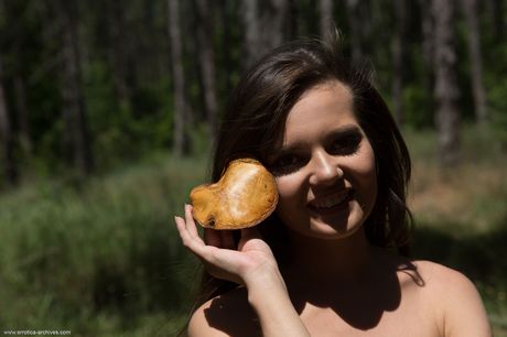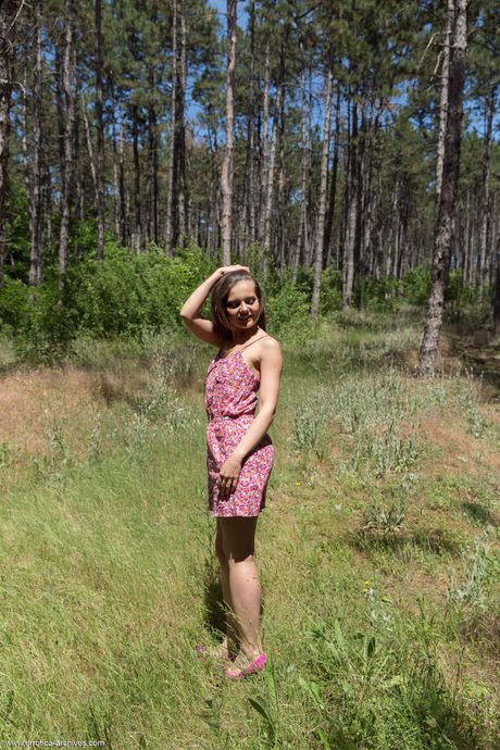 Cute teen Pola shows her small tits & exhibits perfect body in the wild