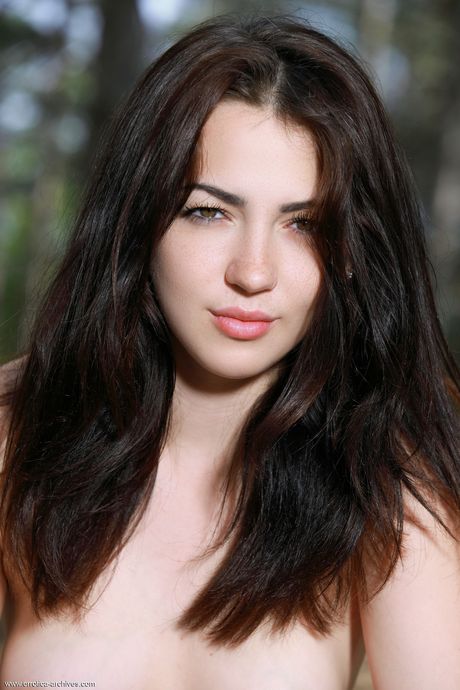 Cute teen Sivilla shows her tight ass and pussy on a road in the wild