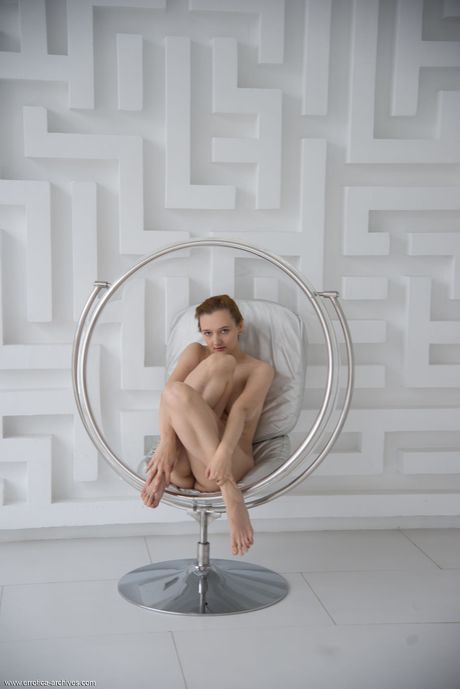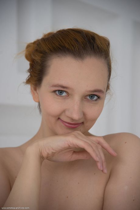 Delicate teen Ena with long legs and sexy eyes poses nude in a plaid shirt