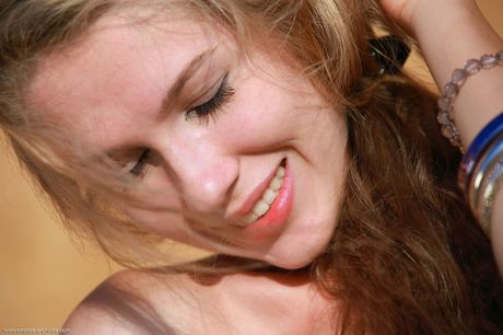 Delicate teen Genevieve Gandi strips naked and poses in the garden