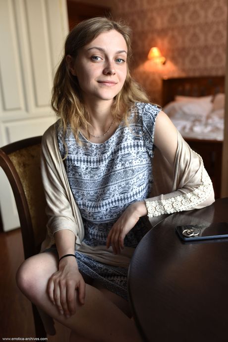 Delicate teen Lika D poses naked in the bedroom and shows her small tits & pussy