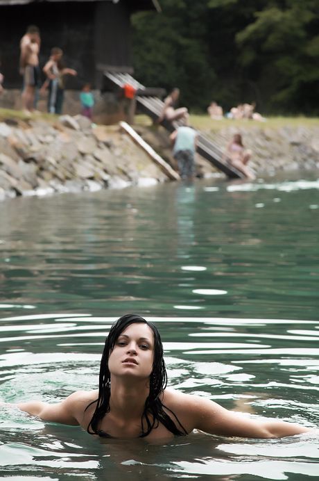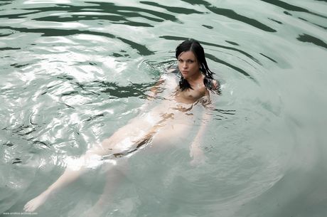 Delicate teen with small tits Isabel poses nude in the lake and on the shore