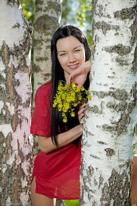 Desirable teen Loreen shows her tiny tits and poses naked in the forest