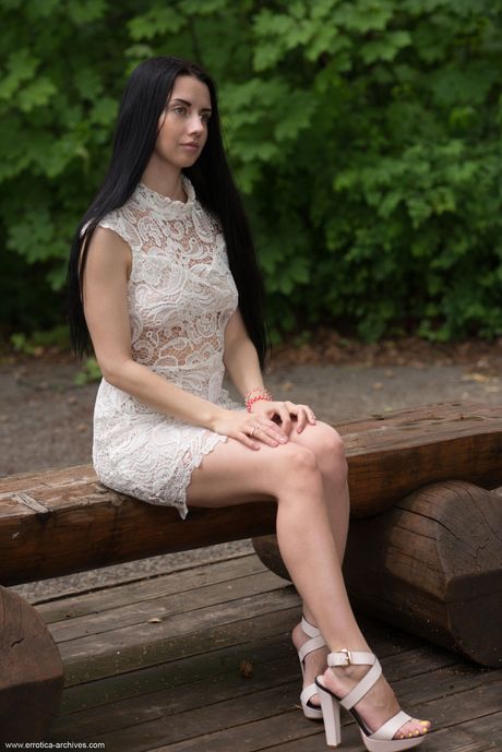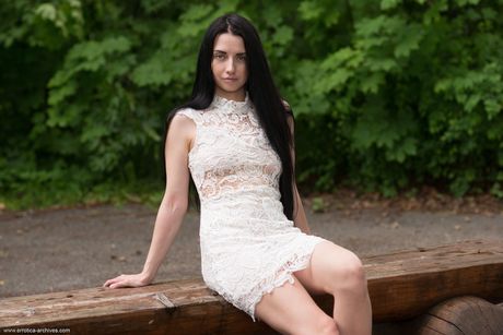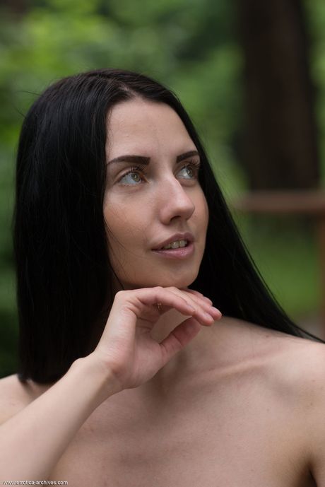 Desirable teen Veronica Snezna poses nude in the forest & reveals her big tits