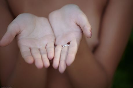 Gorgeous teen Afrodita goes naked on a blanket in a garden