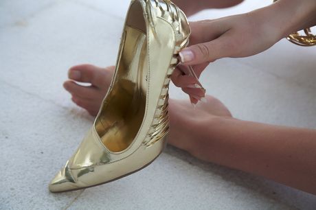 Innocent teen Tubbea models totally naked on a patio chair in heels
