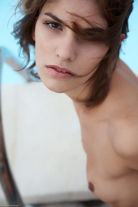 Lean teen Demi strikes great nude poses on a patio in the shade