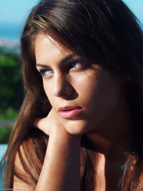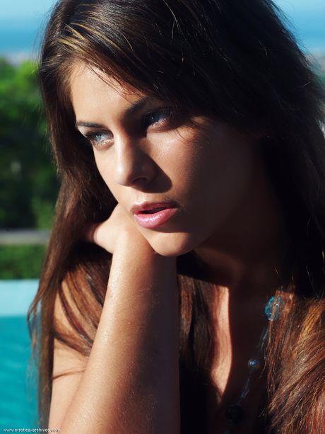 Naked teen Francesca displays her hairy pussy while in an infinity pool
