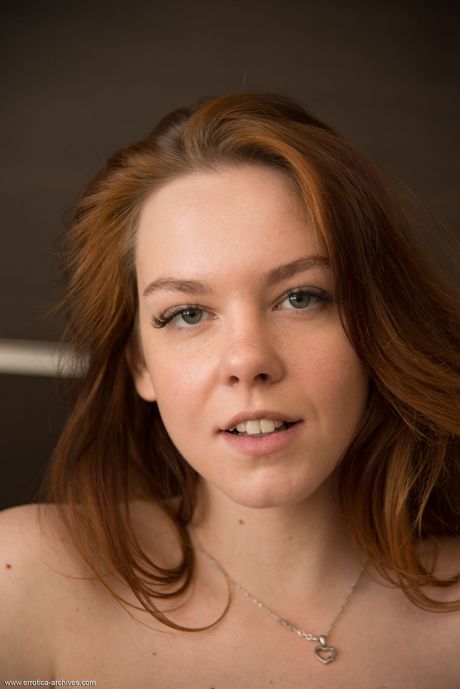 Natural redhead Candy Red models completely naked on a sofa while alone