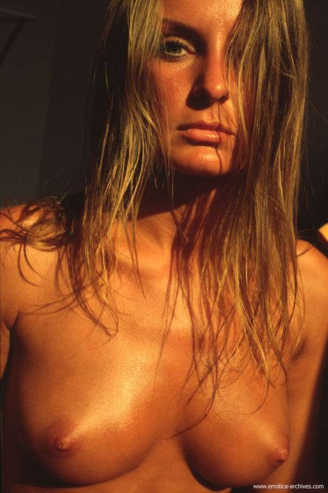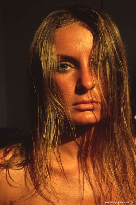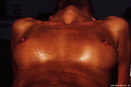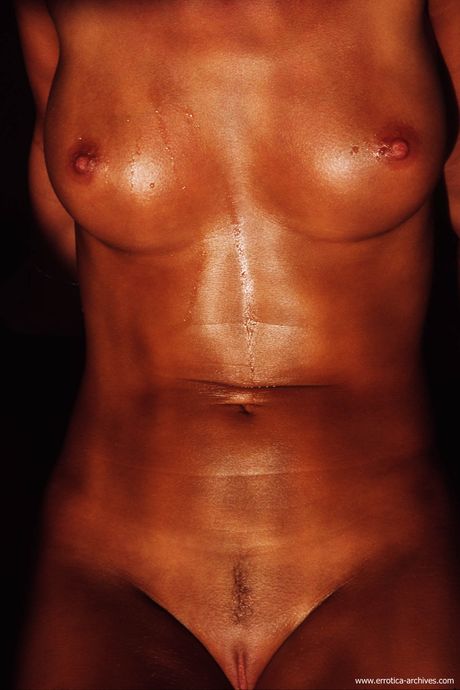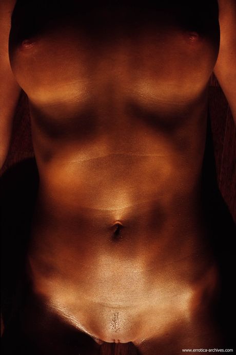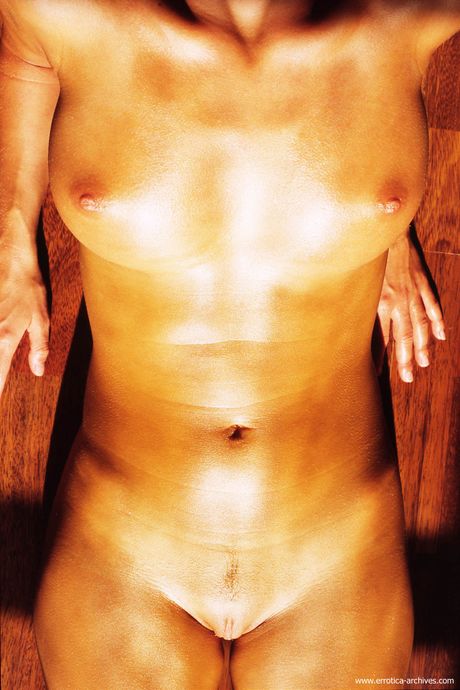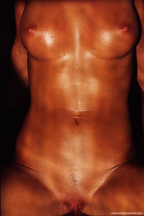 Pretty teen Bellena oils her hot body and poses nude in a solo