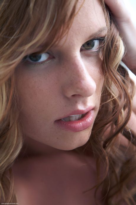 Redheaded teen Carmen Gemini gets naked in high heels on a balcony