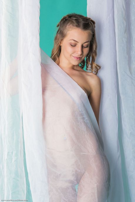 Sexy blonde Nikia A displays her tiny tits and poses naked in a solo