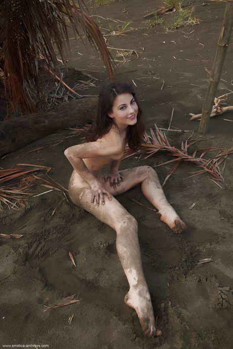 Skinny Latina Lorena spreads her long legs wide open to show her hairy pussy