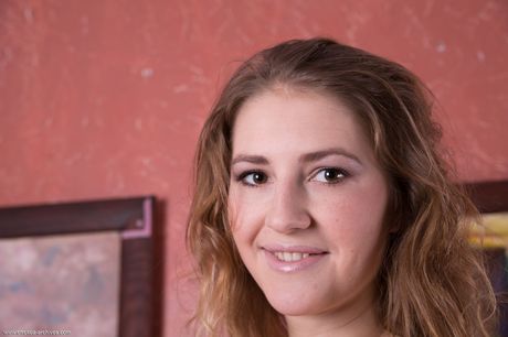 Slender teen Amanda D thrusts her bald cunt forward after getting butt naked